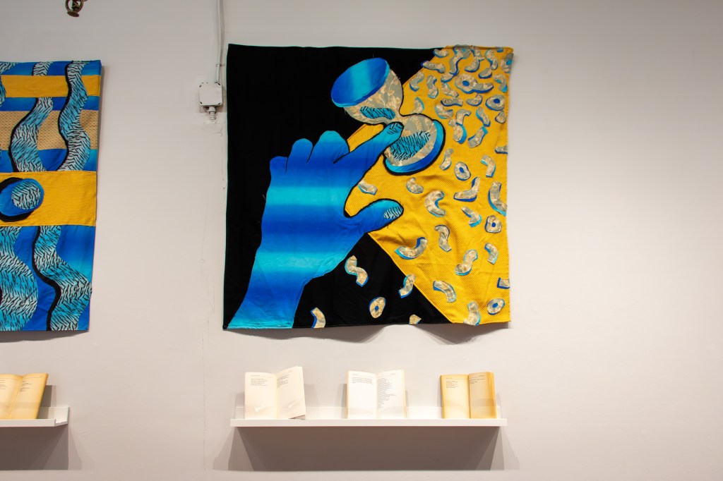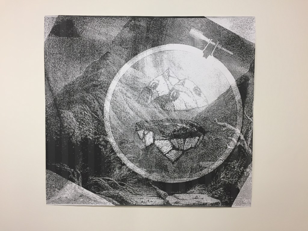 The Dictionary of Nonverbal Communication, fabric, text, and found books, 2019 @ Current Space, Baltimore MD.Their fugitive character, collage, 2018.Objects held in the hand, ink, 2015-19.Crust theory, collage, 2017 (@ St. Charles Projects). Installation photos by Dominic Terlizzi.GUI dreams, ink, 2015.Juvenilia, collage, 2015.