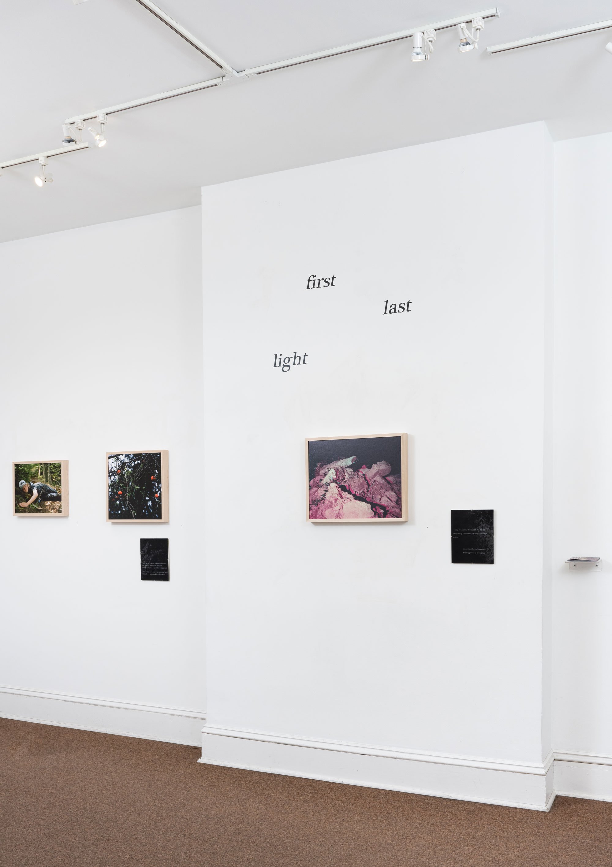 first last light, photographs by Jonna McKone, text pieces and zine by Alicia Puglionesi, 2023 @ Full Circle Gallery, Baltimore MD.